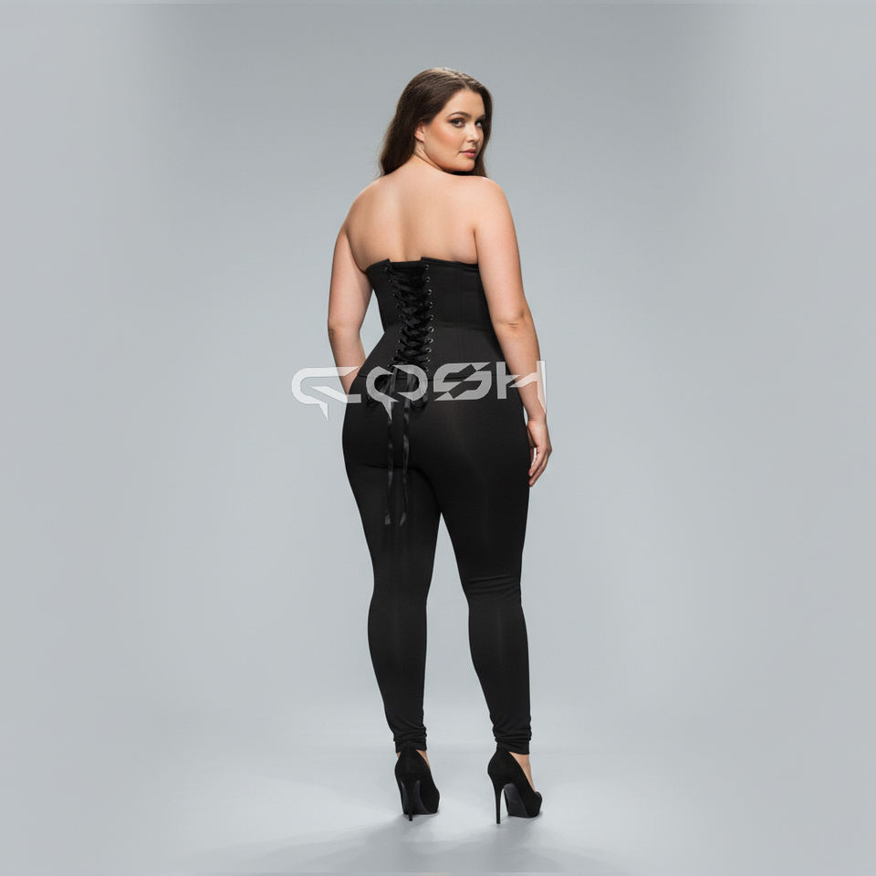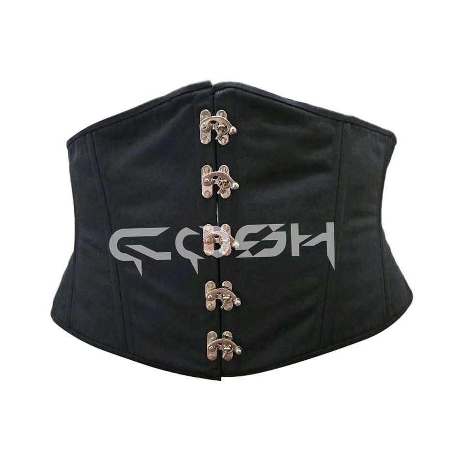 Underbust Steel Boned Black Cotton Corset Custom Waist Training Short Torso Waspie for Women | Zwart katoenen korset
