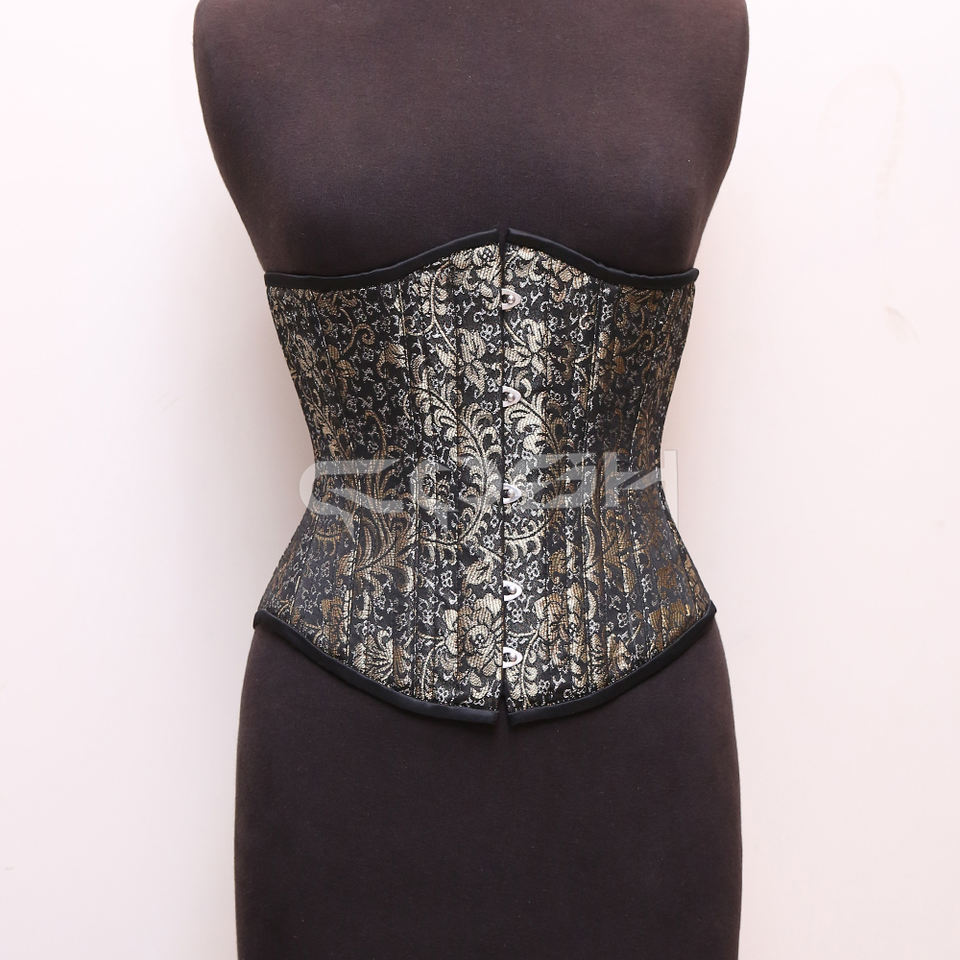 Underbust Steel Boned Waist Trainer Black and Gold Floral Brocade Waist Shaping Hourglass Figure Corset