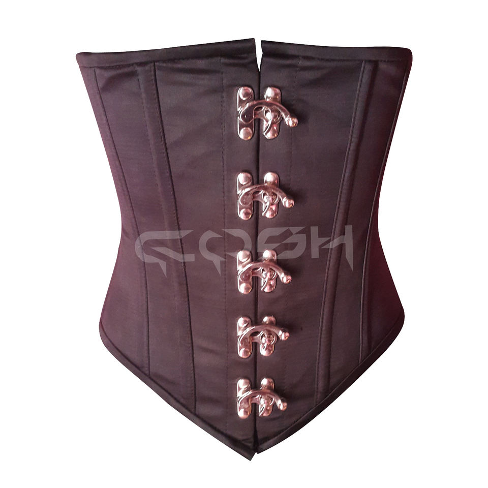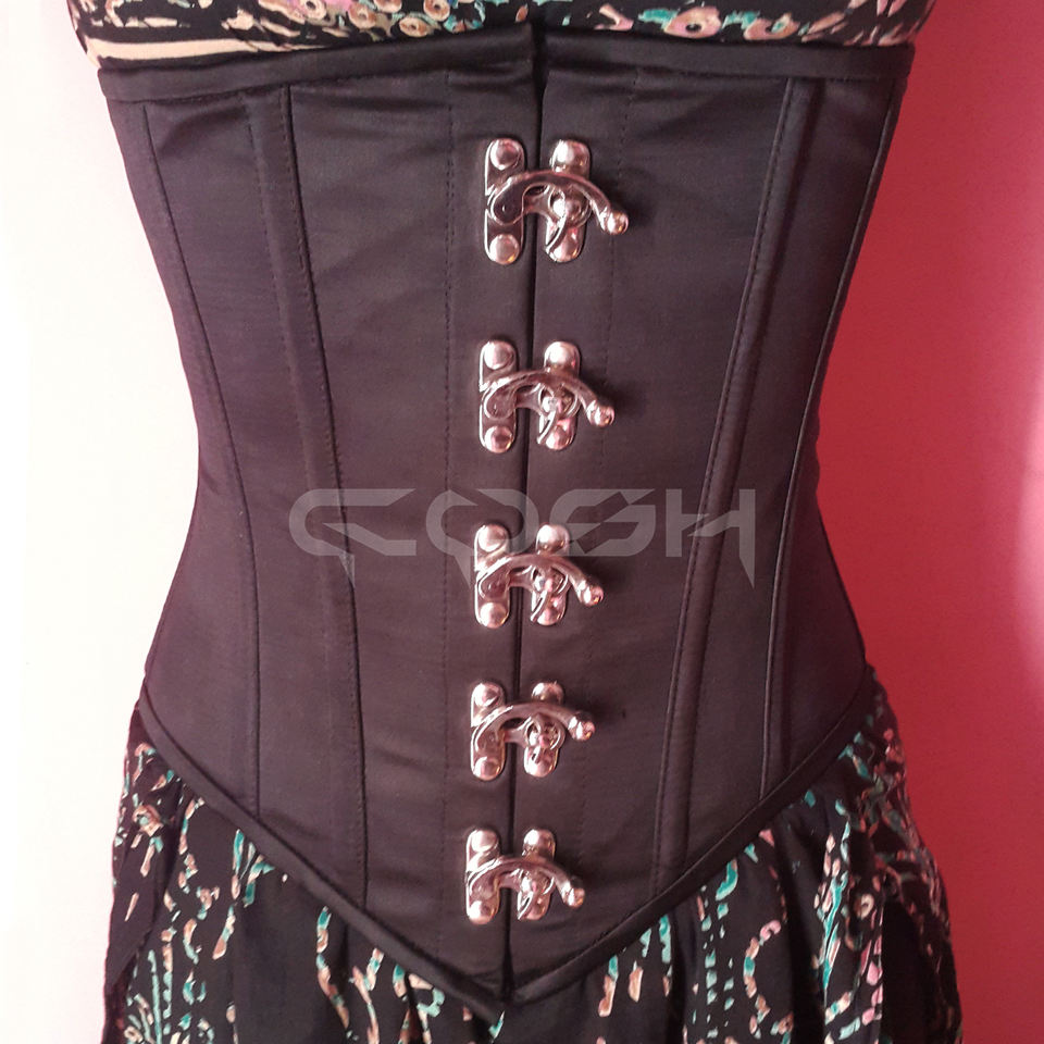 Underbust Steelboned Black Satin Corset With Swing Clasp Closure