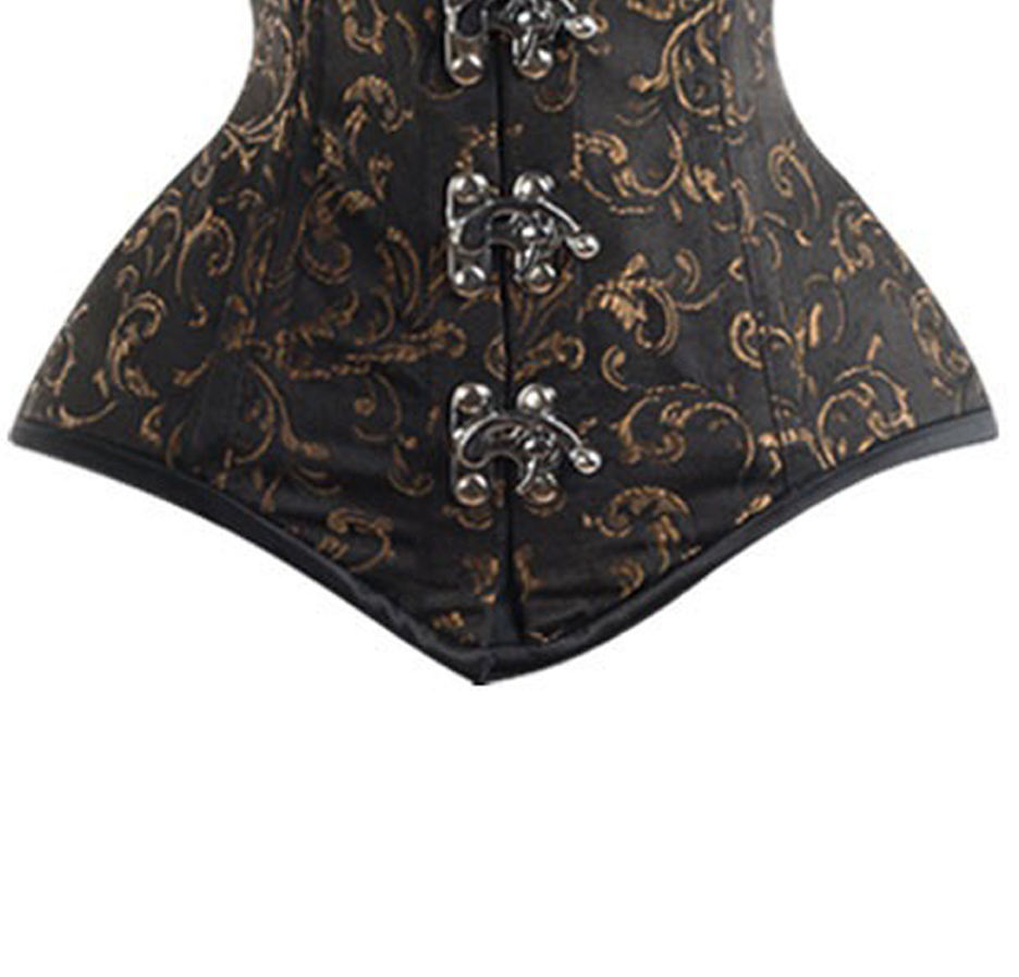 Underbust Steelboned Brown Brocade Corset With Front Antique Clasp , Manufacturer Waist Training Jacquard Corset