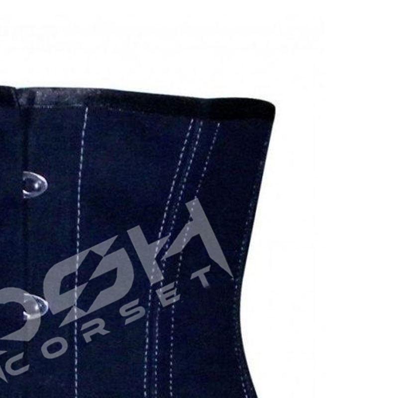 Underbust Steelboned Dark Blue Denim Corset Stitched With White Thread