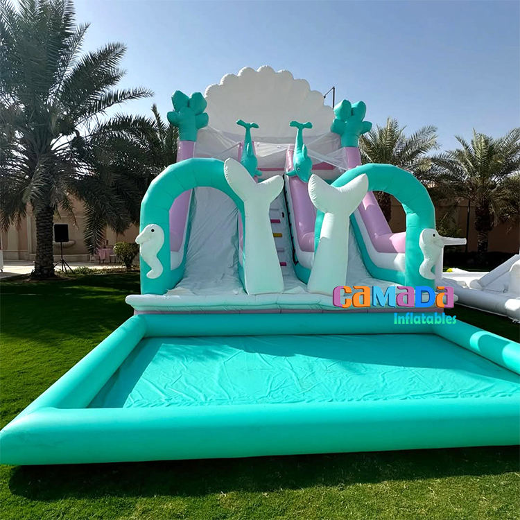 Undersea World Inflatable Water Slide Parties Toboggan Dolphin and Seahorse Trampoline Slide Pastel Water Splash Pool