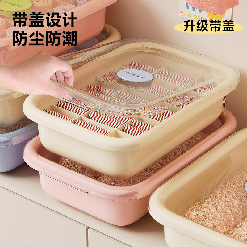 Underwear Storage Box With Lid Stackable Compartment Organiser For Student Dormitory Clothes
