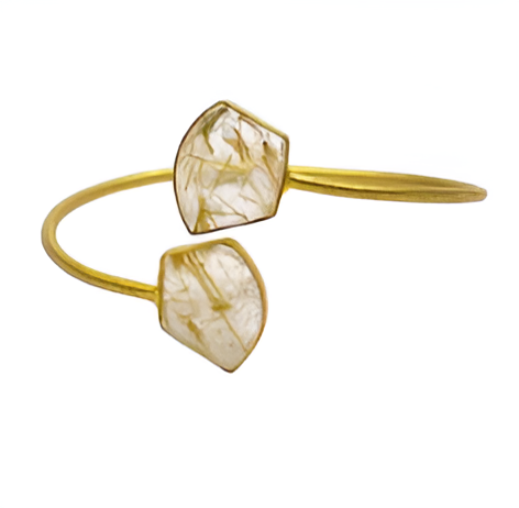 Uneven Golden Rutile Gemstone 925 Sterling Silver Gold Plated Adjustable Bangle Jewelry for wedding anniversary gift for women.