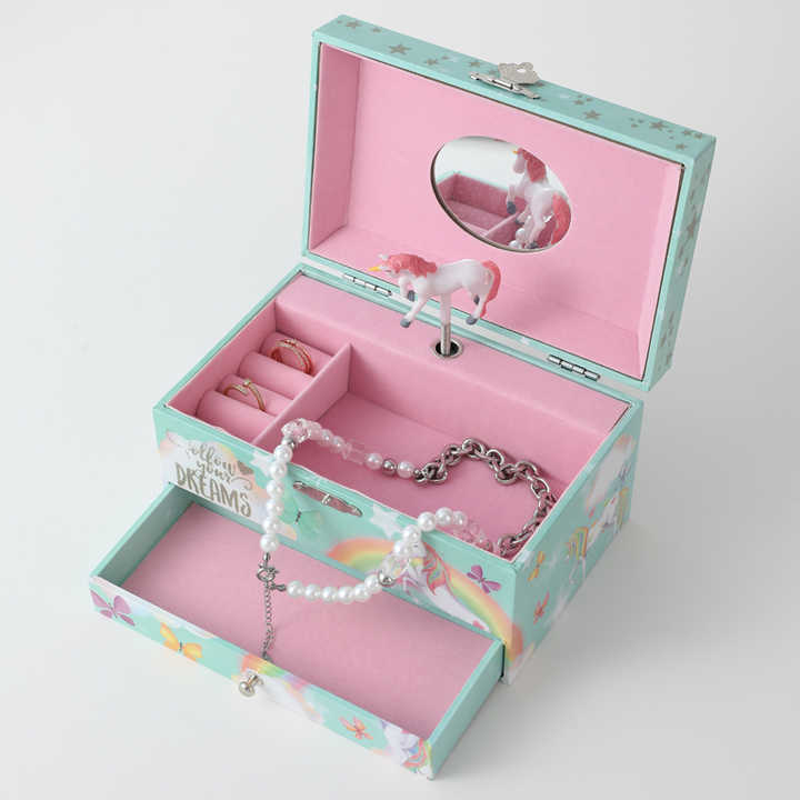 Unicorn Shaped Handmade Modern Musical Jewelry Box Ballerina Hand Cranked Gift for Kids Boys Girls Made Durable MDF Material 30s