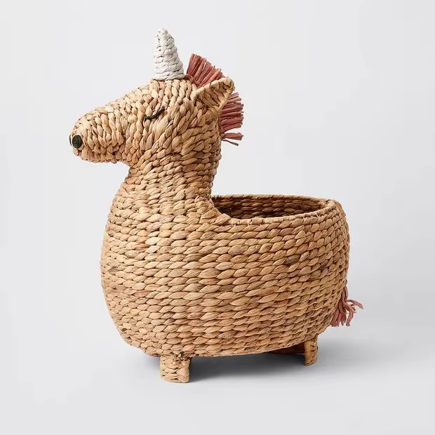 Unicorn-Shaped Water Hyacinth Basket Eco-Friendly Handmade Storage for Nursery, Playroom & Kids Toys Baby Room & Play Area