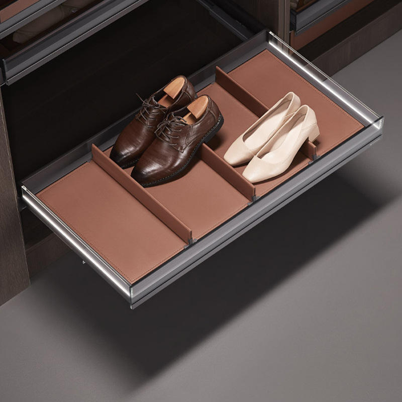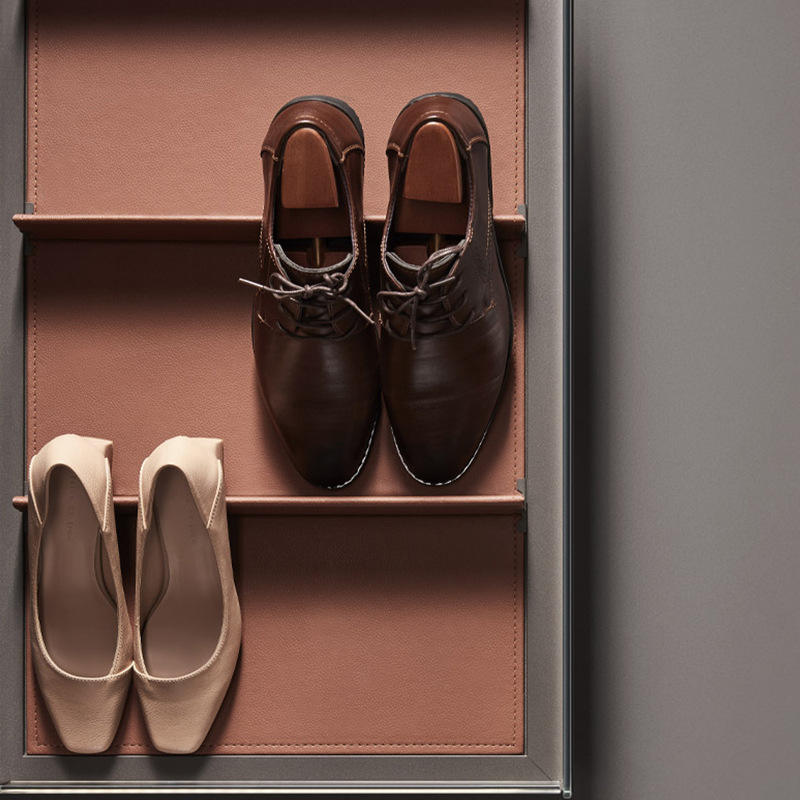 Unihopper Shoe Rack Extendable Telescopic Sliding Storage Damped Glass Leather LED Big Space Foldable Wardrobe
