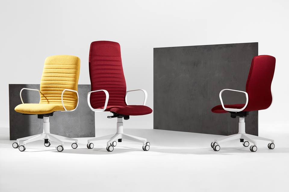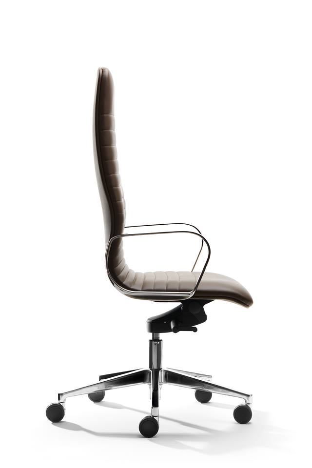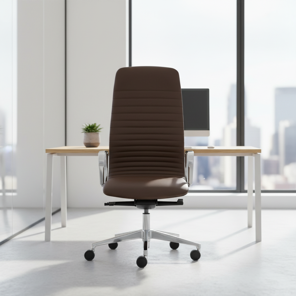 Union Minimalistic High Back Office Chair with Reclining Armchair & Swivel Height Adjustable Quilted Leather Seat Polished Base
