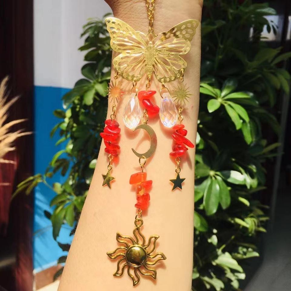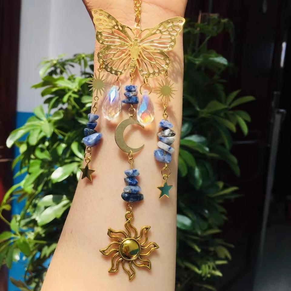 Unionen 1628 Carved Crystal Decoration Sun Catcher Wind Chimes Butterfly Hanging Ornaments for Living Room Balcony