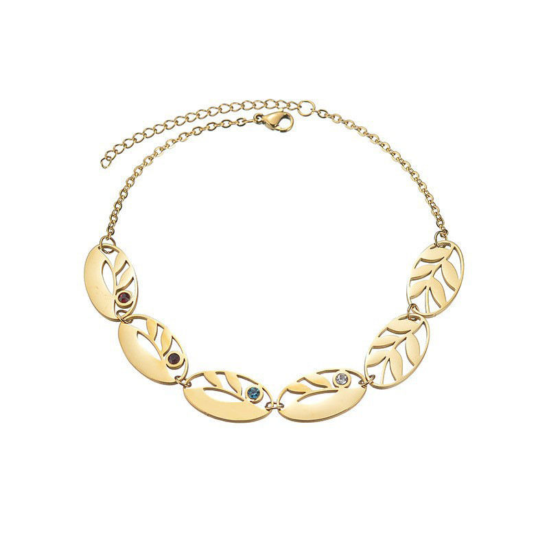 Unionen 1927 Custom Name Bar Bracelet Hollow Leaf Design with Gold Plated Zircon Personalized Gift for Women Men for Anniversary