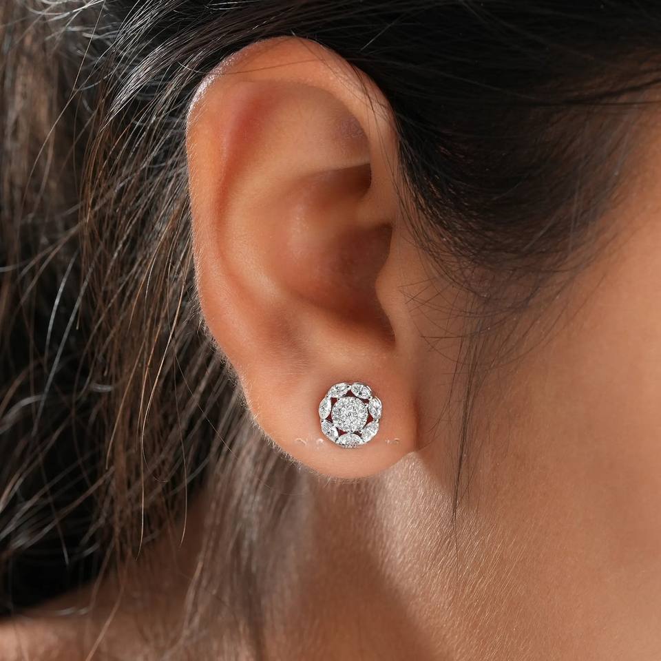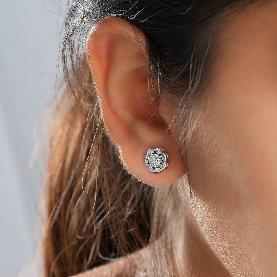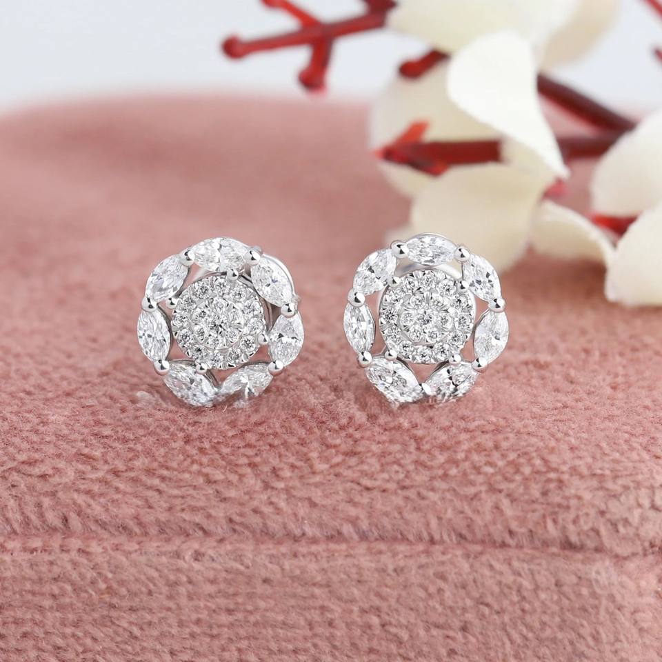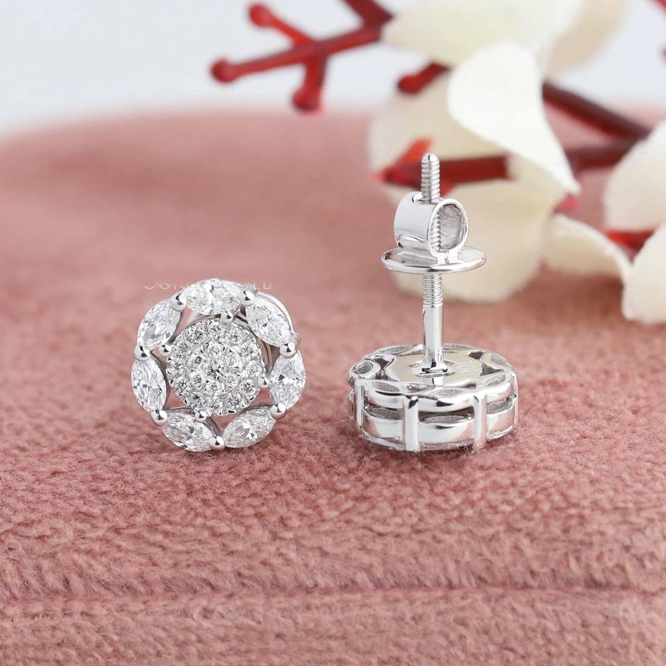 Unique 10k Solid Gold Round Cluster Diamond Halo Earrings Genuine Diamond Stud Earrings With Unbeatable Market Price Worldwide