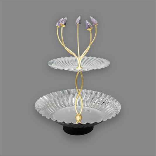 Unique 2 Tier Cake Stand for Home Hotel & Restaurants for Weddings Dinnerware Cake Stands Silver Color Brass & Resin Cake Stands