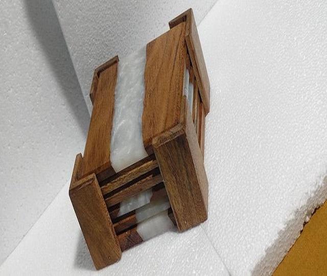 Unique 4 Inch Walnut Wood Coasters Handmade Aesthetically Pleasing Tree River Shaped Epoxy Resin Mats Pads