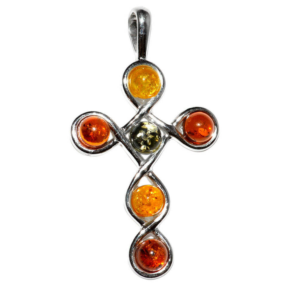 Unique 925 Sterling Silver Authentic Baltic Amber Gemstone Cross Pendant Silver Fashion Jewelry For Beautiful Women