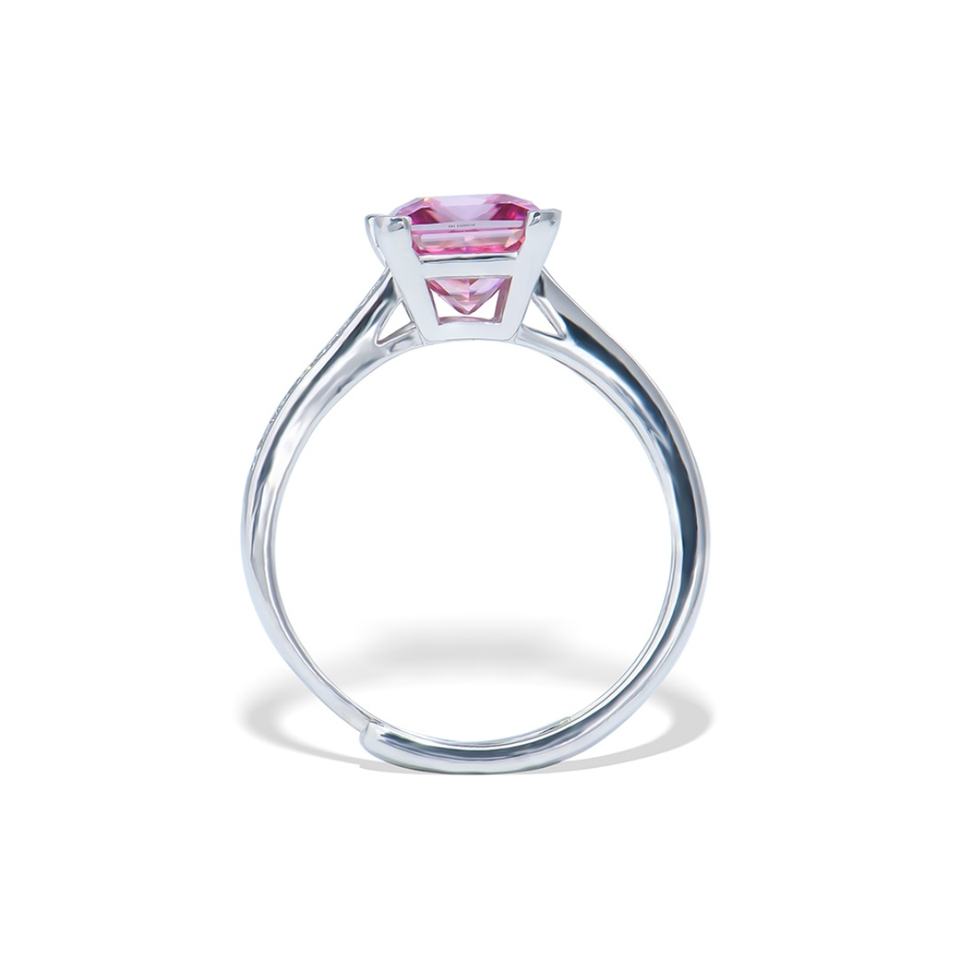 Unique 925 Sterling Silver Fine Jewelry Pink Princess Shape 2ct 7*7mm Moissanite Diamond Adjustable Size Engagement Ring