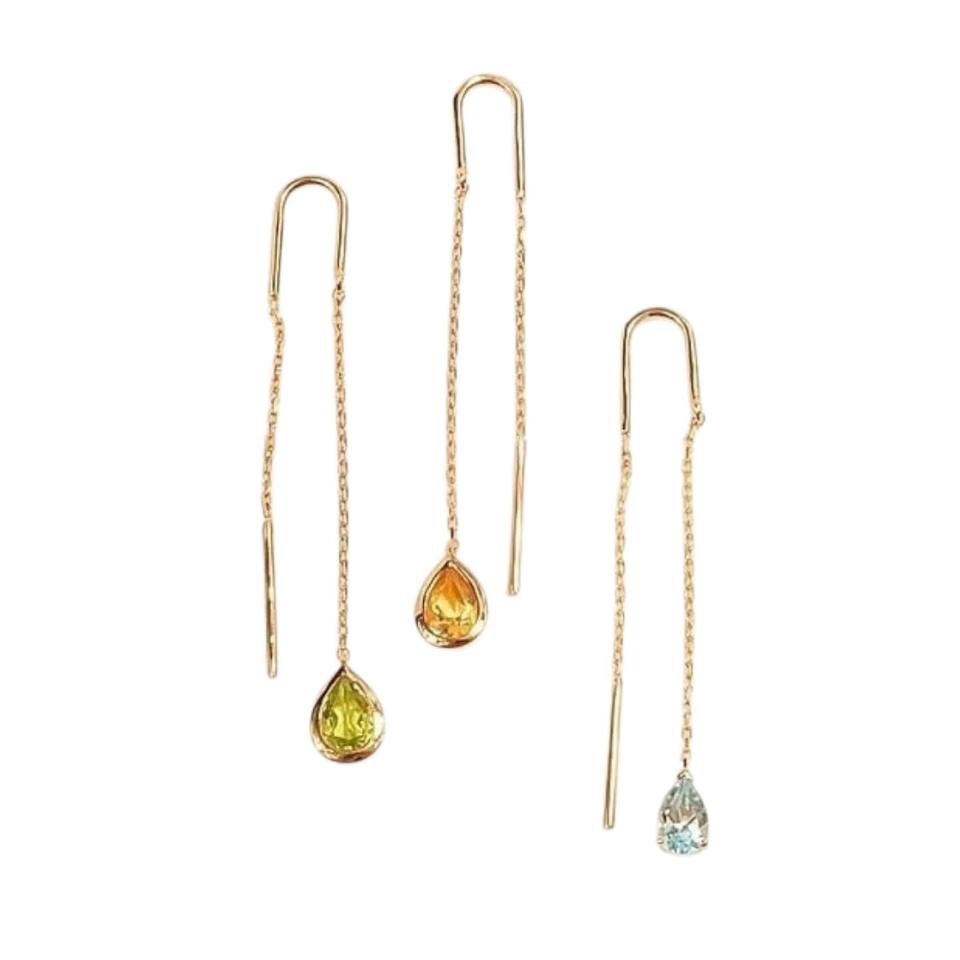 Unique 9k Pink Gold Teardrop Chain Earrings with Real Gemstones Trendy Jewelry Gift for Party-Look Layering