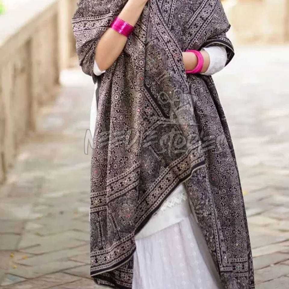 Unique Ajrak Scarf in Ethnic Style Soft Cotton Made Fabric Embroidered Fashion Ajrak Scarf