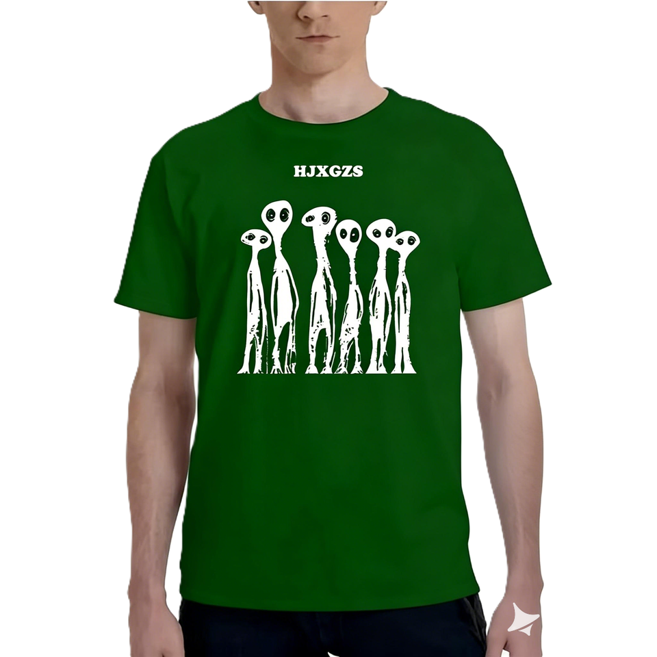 Unique Alien Group Sketch Men's Quirky Graphic Tee Mystery Sci-Fi Creature Cotton T-Shirt Street Style Oversized Casual Top