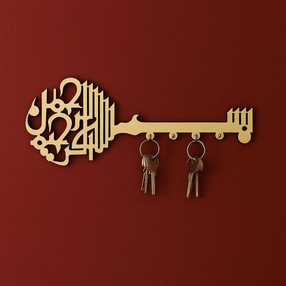 Unique Arabic Calligraphy Key Shape Metal Key Holder Wall Hanging Hook For Home Office And Entryway Use Wholesale From India