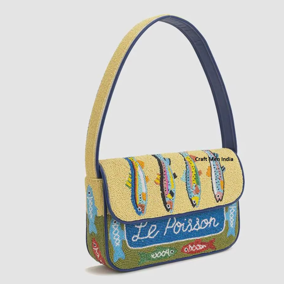 Unique Beaded Embroidery Designer Handbag With Seed Beads Seed Beads Embellished Handmade Embroidery Handbag