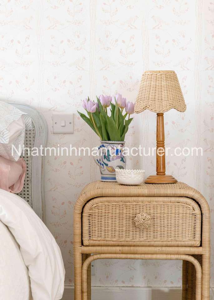Unique Bedroom Furniture Wood Bed Stand Night Table Natural Rattan Bedside Cabinet
