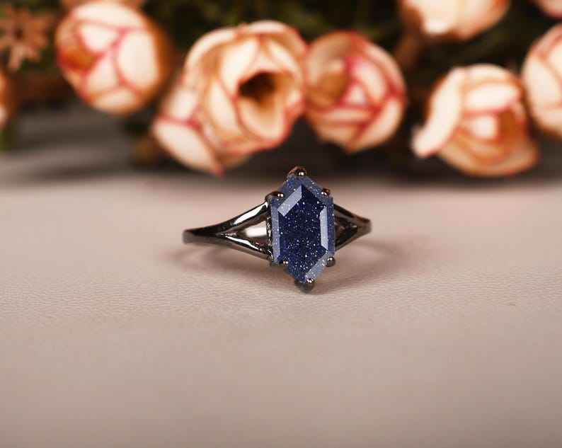 Unique Black Hexagon Sandstone Ring Sandstone Wedding Ring Promise Ring For Women Gifts For Mother