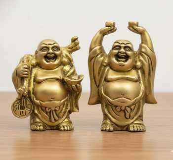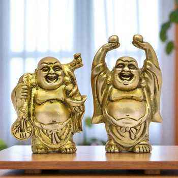 Unique Brass Laughing Buddha Statue Handmade Antique Gold Feng Shui Decor Lucky Buddha Sculpture for Home and Gift