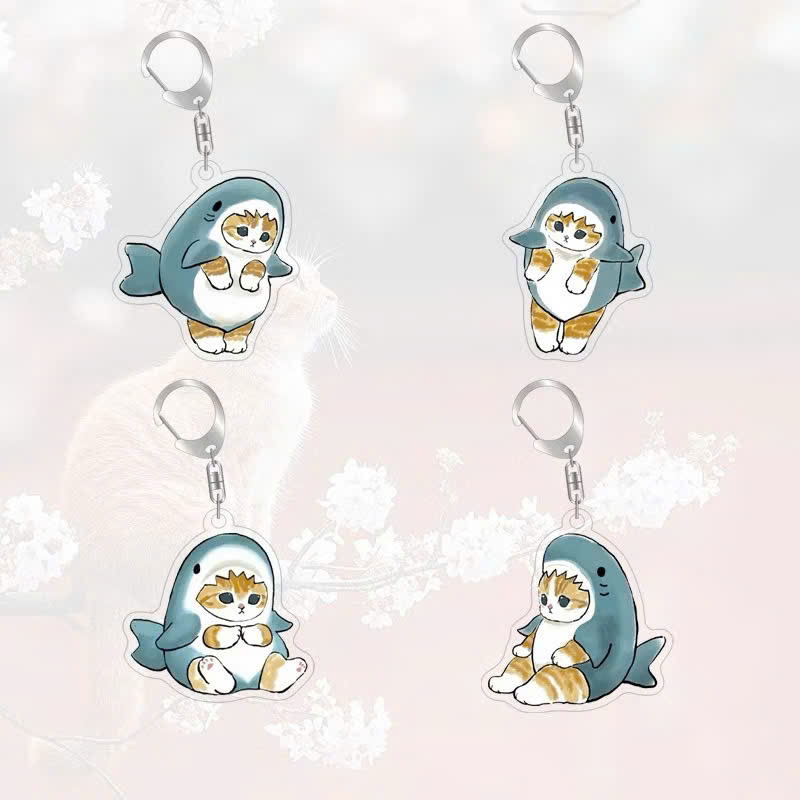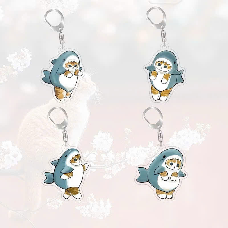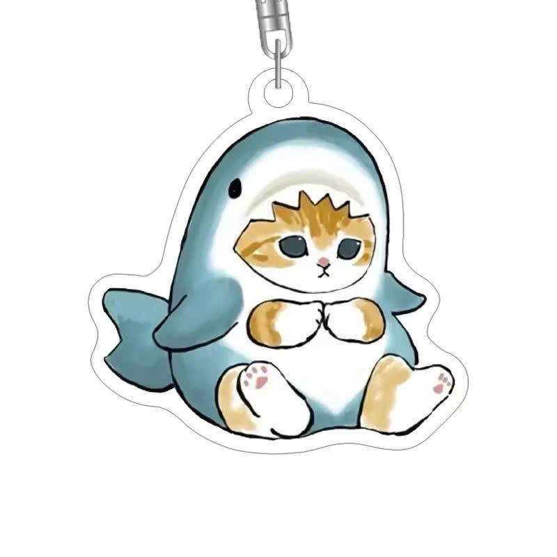 Premium Mica Cat Wearing Shark Costume Keychain Unique Anime Toy for Bags Keys & More