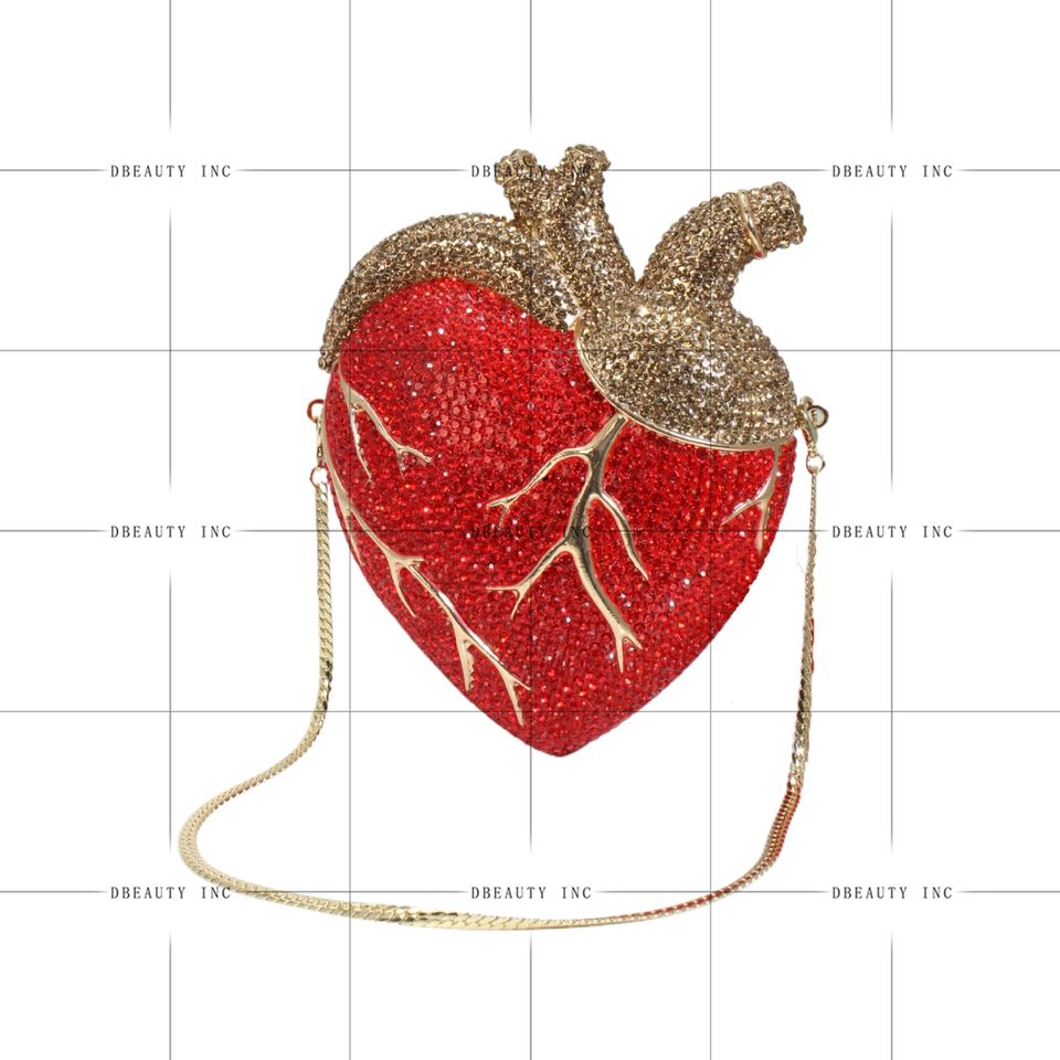 Unique Classic Fashion Evening Clutch Bag for Women with Sparkling Rhinestone Heart Shape for Party Prom