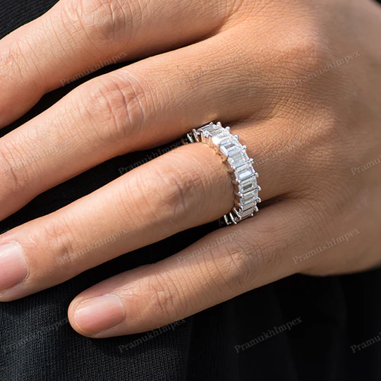 Unique Collections Hip Hop Iced Moissanite Cut Sterling Silver/Gold Plated Prong Set Full Eternity Wedding Bands Rings