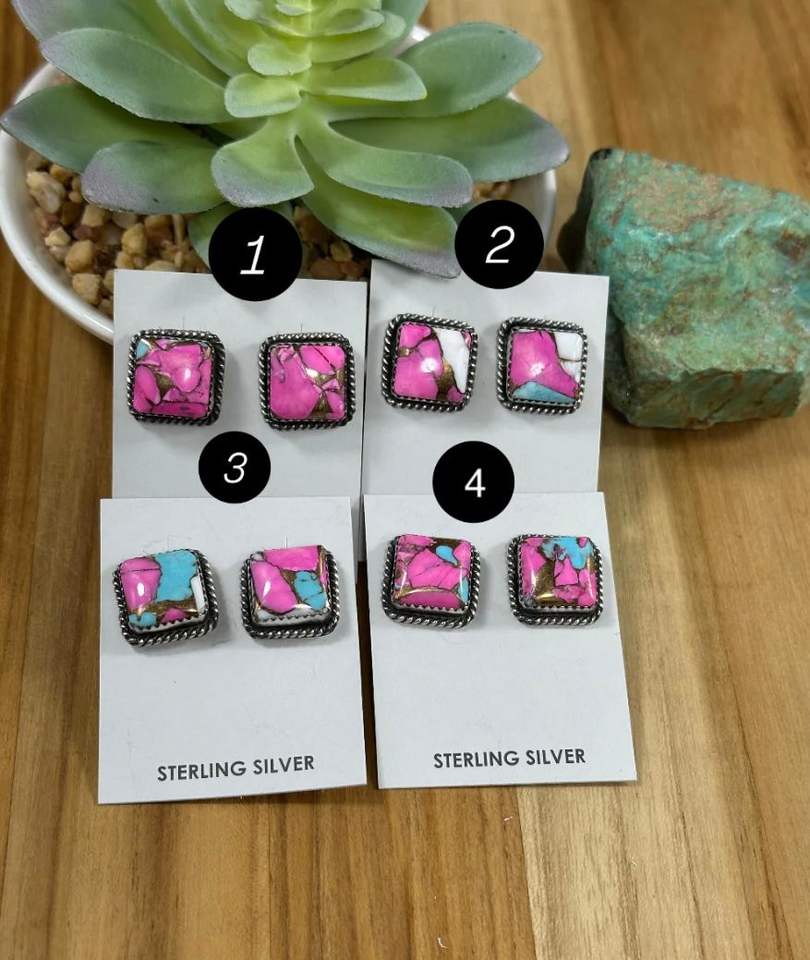 Unique Cotton Candy Square Stud Earrings Sterling Silver Handmade Jewelry Modern Minimalist Earrings Artistic Gift For Her