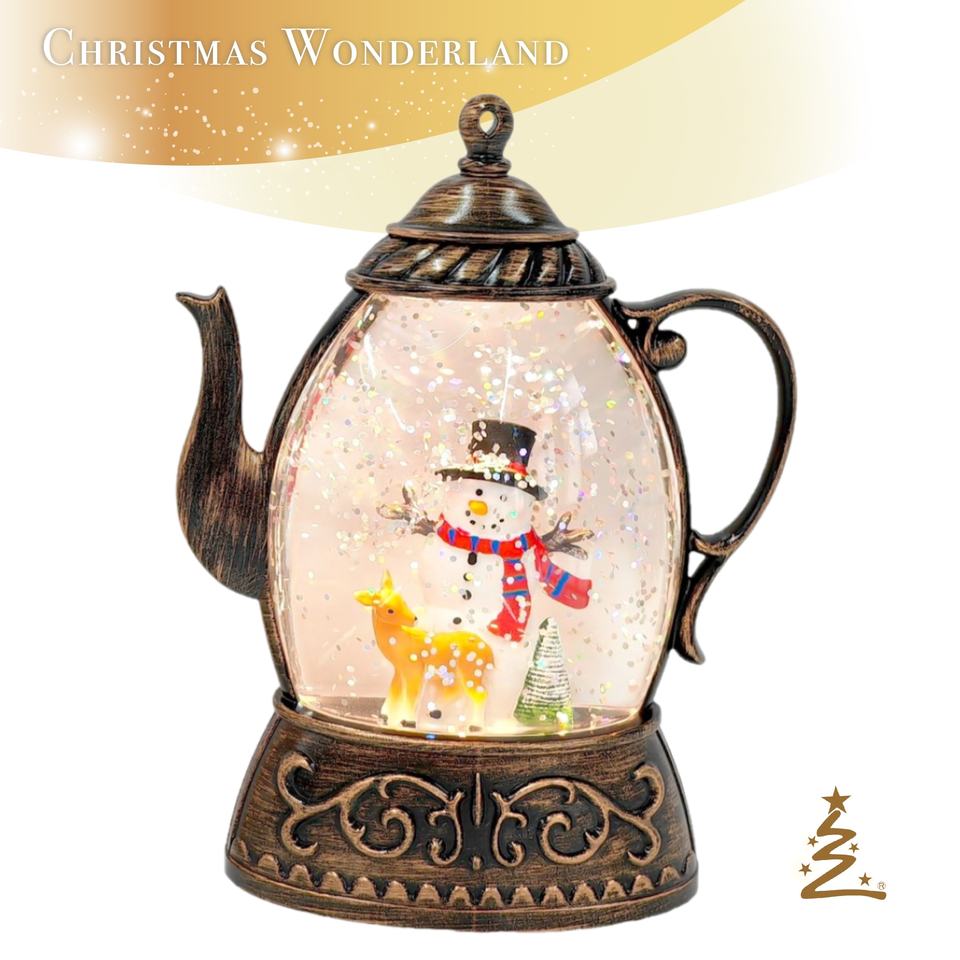 Unique Creative High Quality Christmas New Year Household Decoration Antique Gold Plastic Light Water Teapot Tablepiece