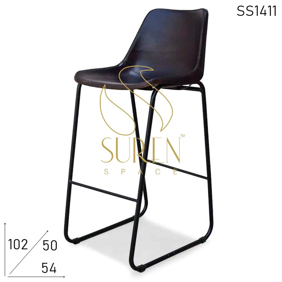 Jodhpur Unique Cross-Leg Metal Base Bar Chair Industrial Leather Furniture Pure Leather Seating for Dining Minimalist Design