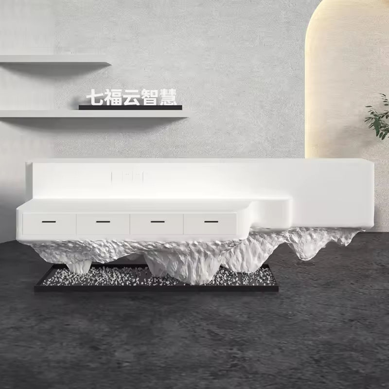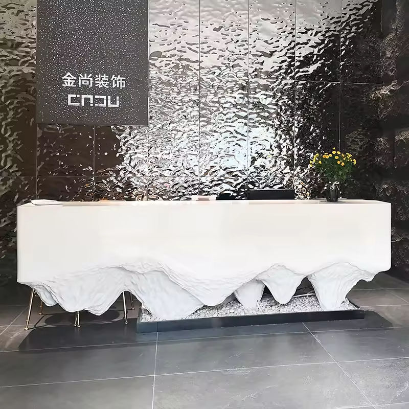 Unique Customized Modern Extendable Reception Desk with Unconventional Shapes for Commercial Use in Hotels and Malls