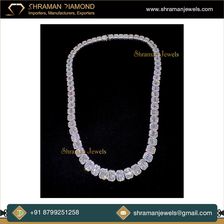 Baguette Square Link Necklace Diamond 22inch ChainJewelry Type