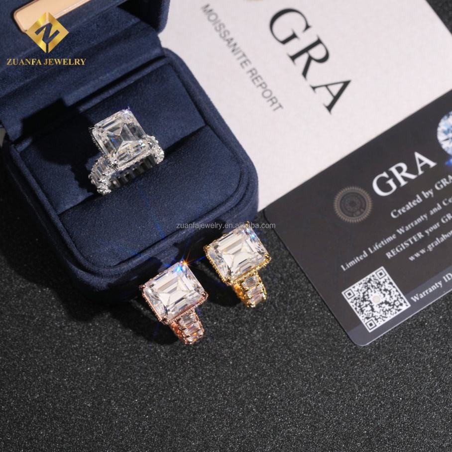 Unique Design 925 Solid Silver Boutique Jewelry Unisex Fully D VVS1 Emerald Moissanite Diamond Engagement Eternity Band Ring