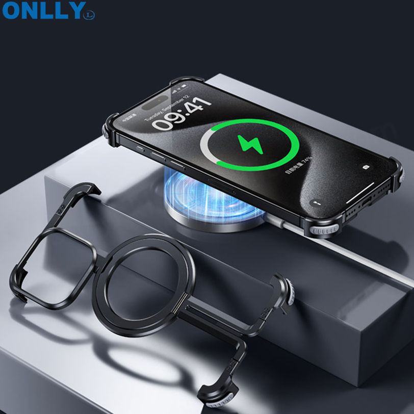 Unique Design Aluminum Magnetic Metal Wireless Charging Kickstand Phone case Cover for iphone 15 Pro Max 14 13 for S23 S24 ultra