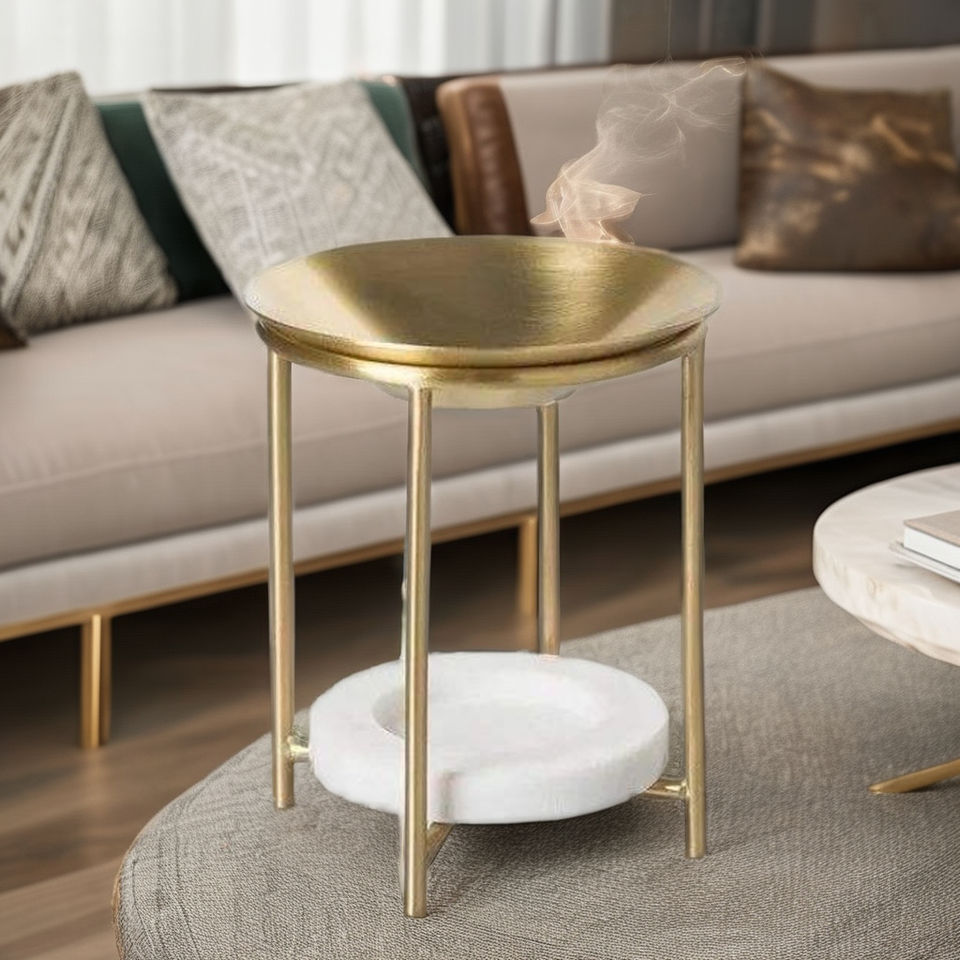 Elegant Gold Metal Tea Light Aroma Oil Diffuser with Marble Plate Luxury Home Decor for Essential Oils & Candles