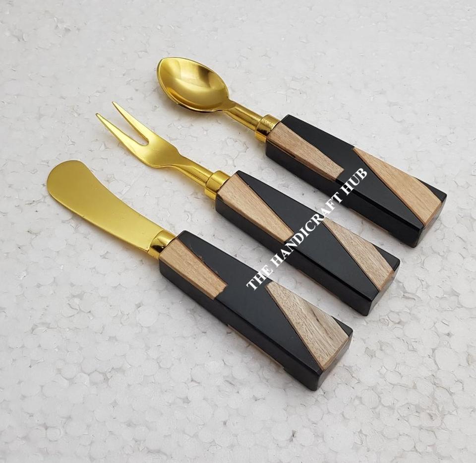 Unique Design Cheese Set Kitchen Utensil Cutlery Set Stainless Steel Cheese Set Wood Resin Handle At very reasonable Price