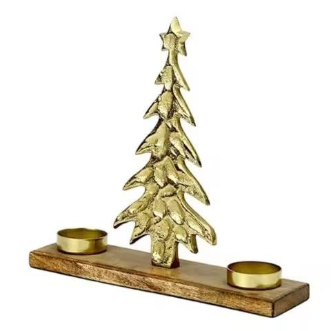 Unique Design Christmas Tree tealight Holder Home Decorative Ornament Prime Quality Silver Metal Candle Holder With Wooden Base