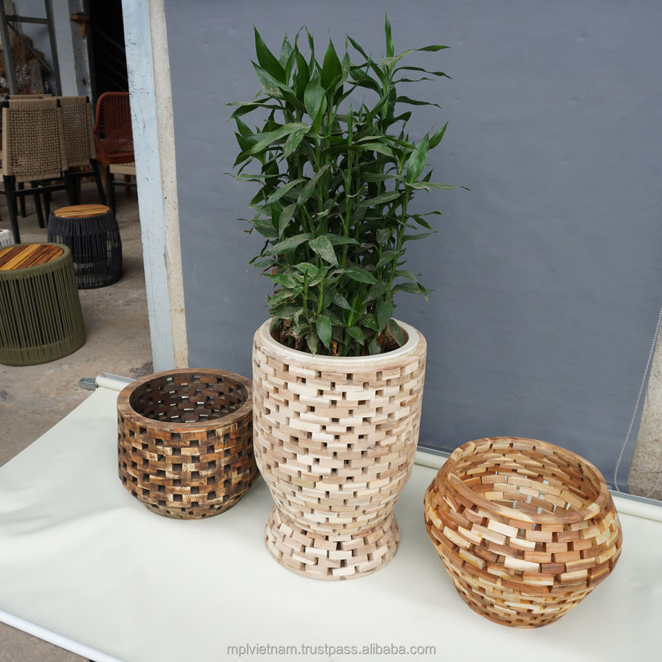 Unique Design Eco-Friendly Acacia Wood Plant Pot for Home Hotel Restaurant Garden Decoration Made in Vietnam