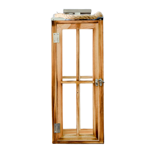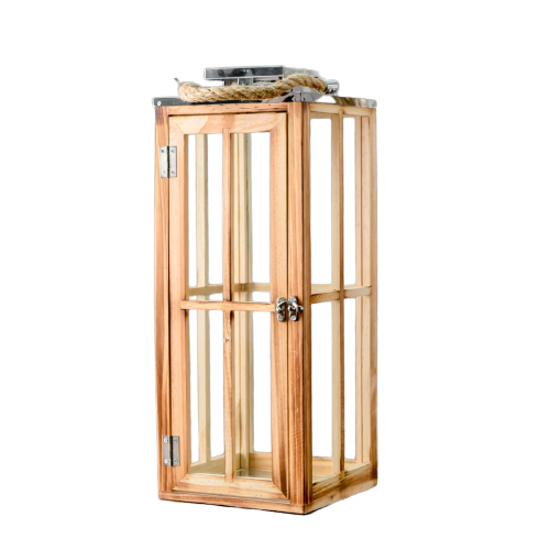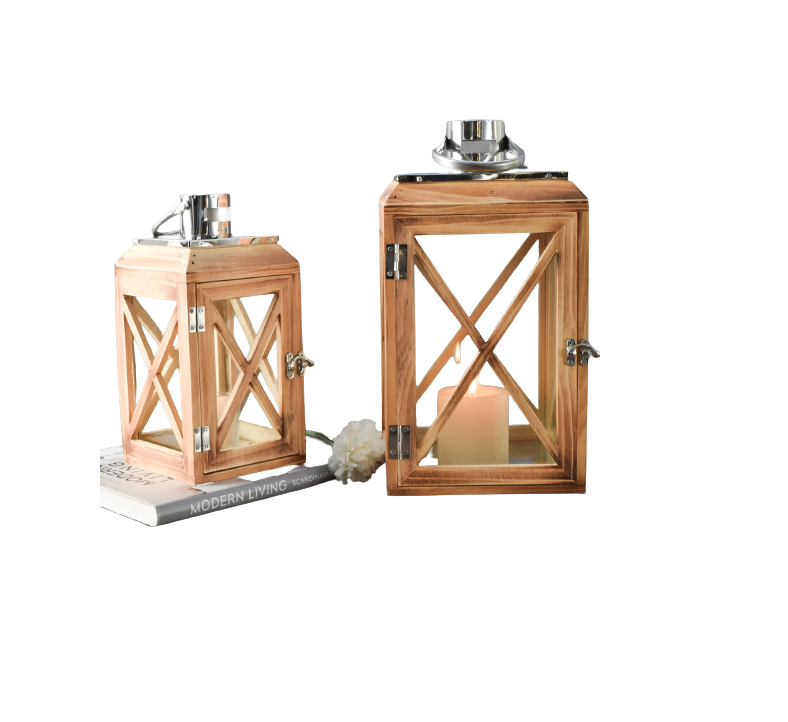 Unique Design European Vintage Wind Proof Rustic Wooden Lantern Courtyard Portable Wooden Hurricane Candle Lantern