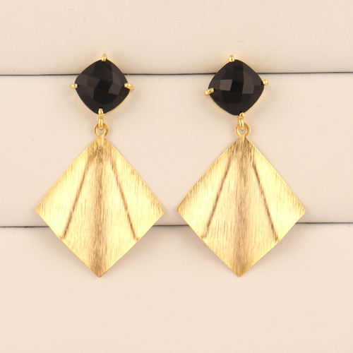 Unique Design Faceted Black Onyx Brushed Finishing Drop Earring Gold/silver Plated High Polished Top Quality Drop Dangle Earring