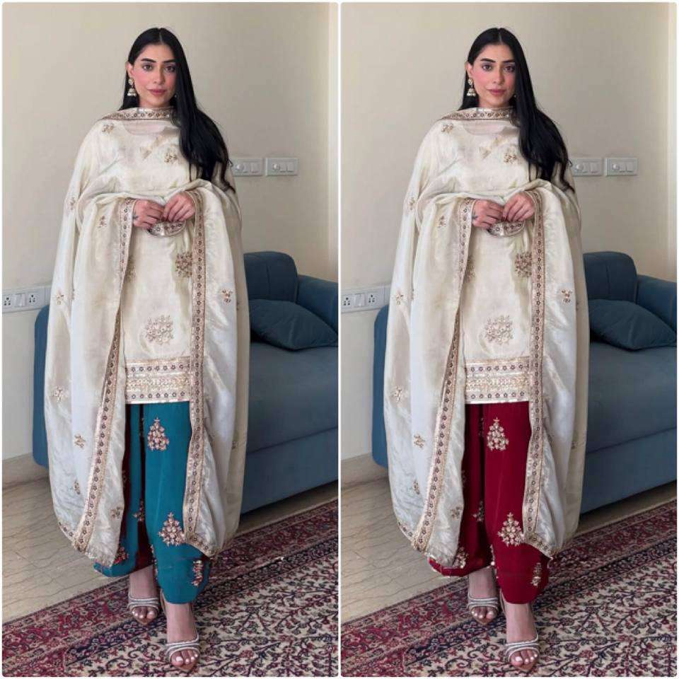 Product Name:Chinon Silk Sequence Embroidery Work Top & Bottom With Dupatta