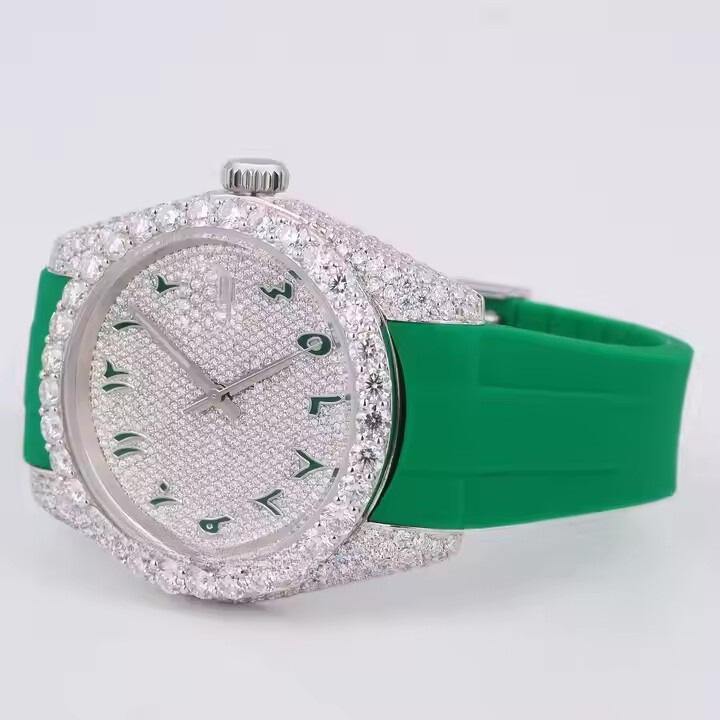 Unique Design Full Rose Gold Natural Diamond Watch with Luxury Moissanite Watch Green Strap for men Available Affordable Price