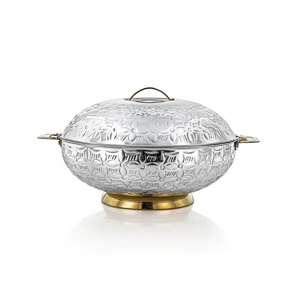 Unique Design Glossy Finishing Rounded Insulated Casserole Serving Hot Pot Tabletop Stainless Steel Food Server