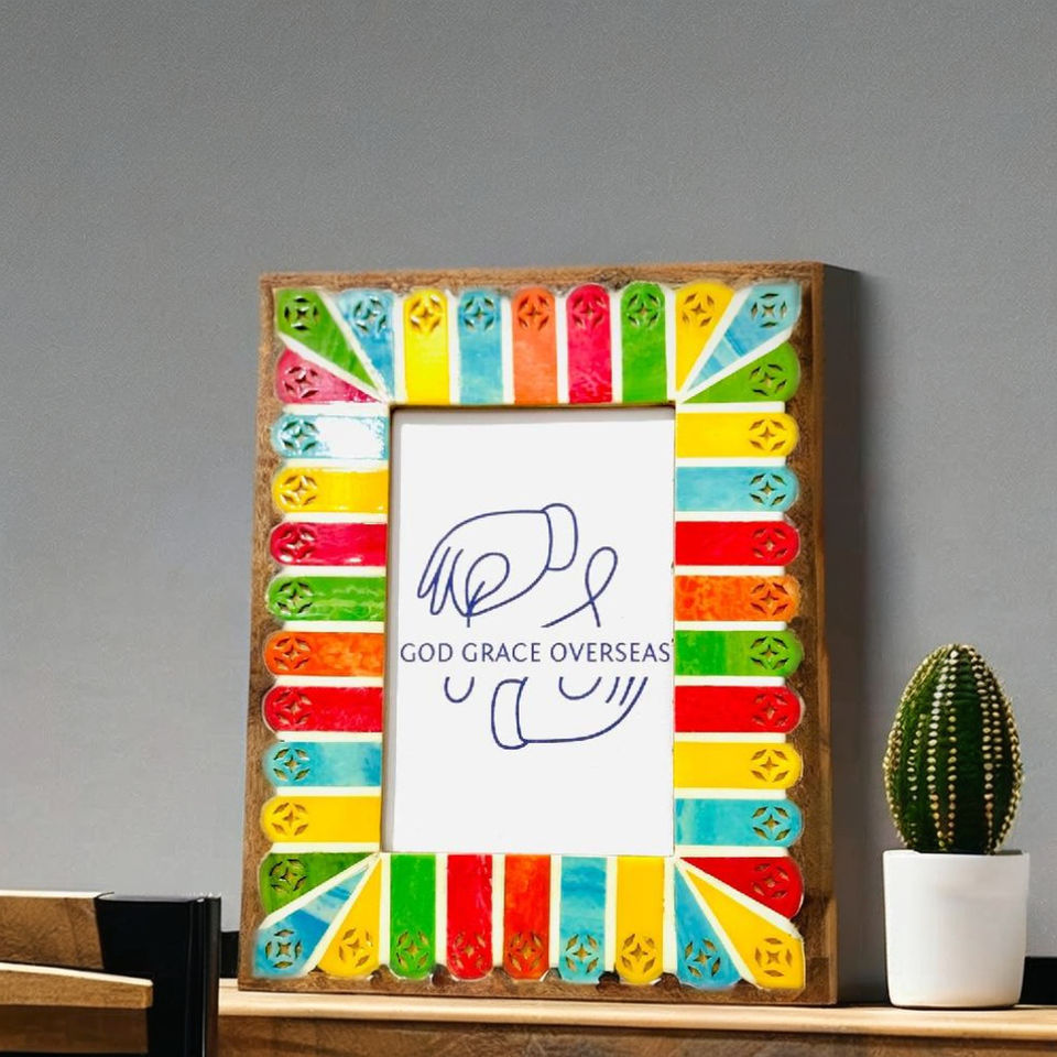 Handmade Modern Luxury Mosaic Picture Frame Unique Resin Inlay Design by Indian Manufacturer Wood Frames God's Grace Overseas