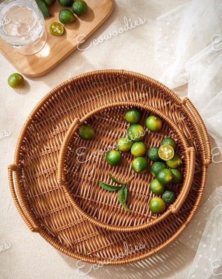 Keyword:Hand Woven Tabletop Food Serving Basket Rattan Kitchen Tray
