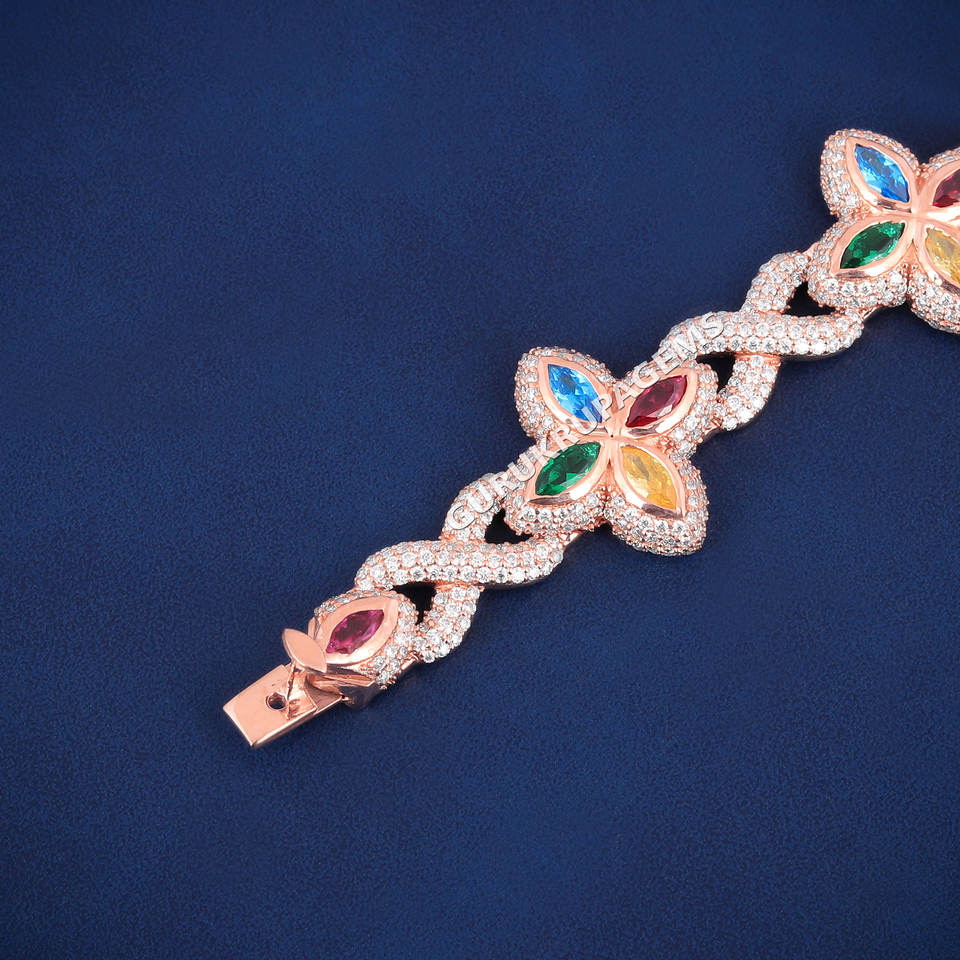 Unique Design Luxury Jewelry Hot Selling Hip Hop Mulit Color Marquise Moissanite Iced Out S925 Silver Cuban Clover Bracelet Men