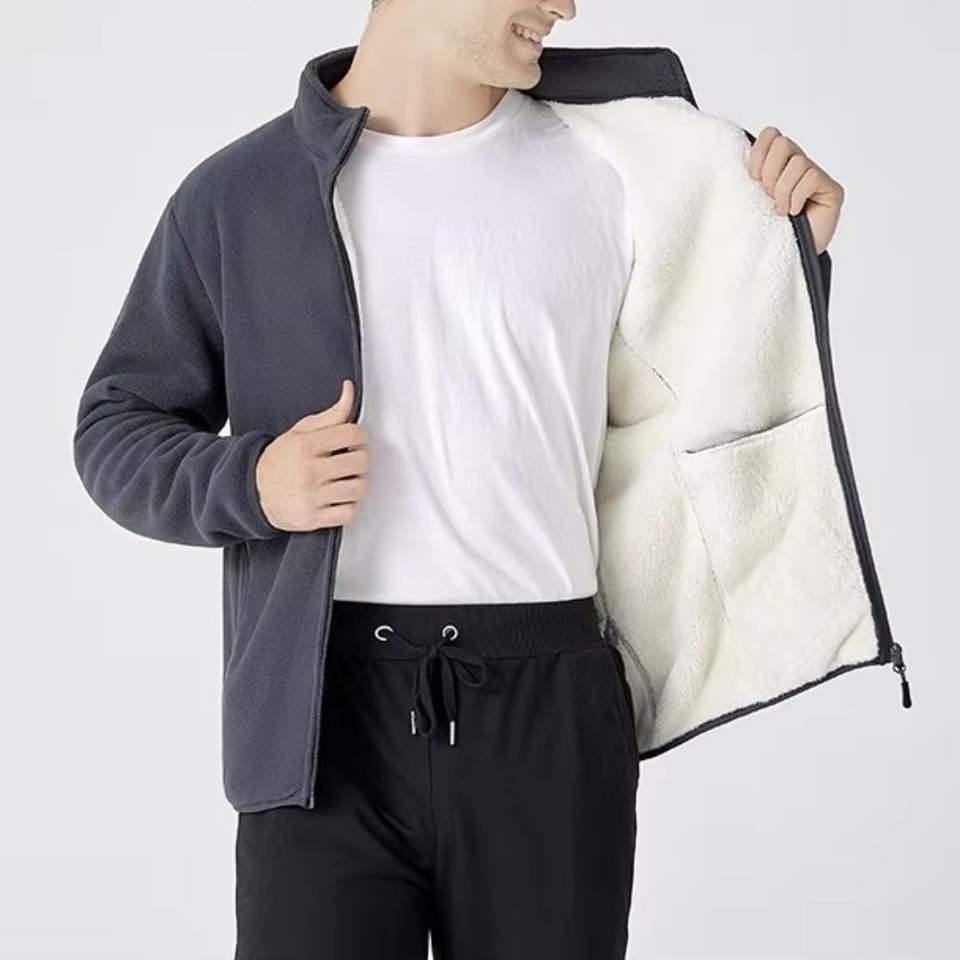 Unique Design Men's Full Sleeve Men Full Zip Polar Fleece Jacket Warm Winter Casual Outerwear
